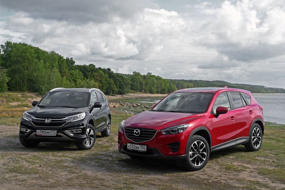 Наши сегодняшние дуэлянты — парочка очень популярных в России среднеразмерных кроссоверов. Оба — «японцы», оба — недавно подверглись рестайлингу, оба — в богатых комплектациях и с топовыми бензиновыми атмосферными двигателями. Что уж тут и говорить, соперники — в самом соку, в самом расцвете сил, на пике. Будем выяснять, кто «сочнее» — Honda CR-V или Mazda CX-5
