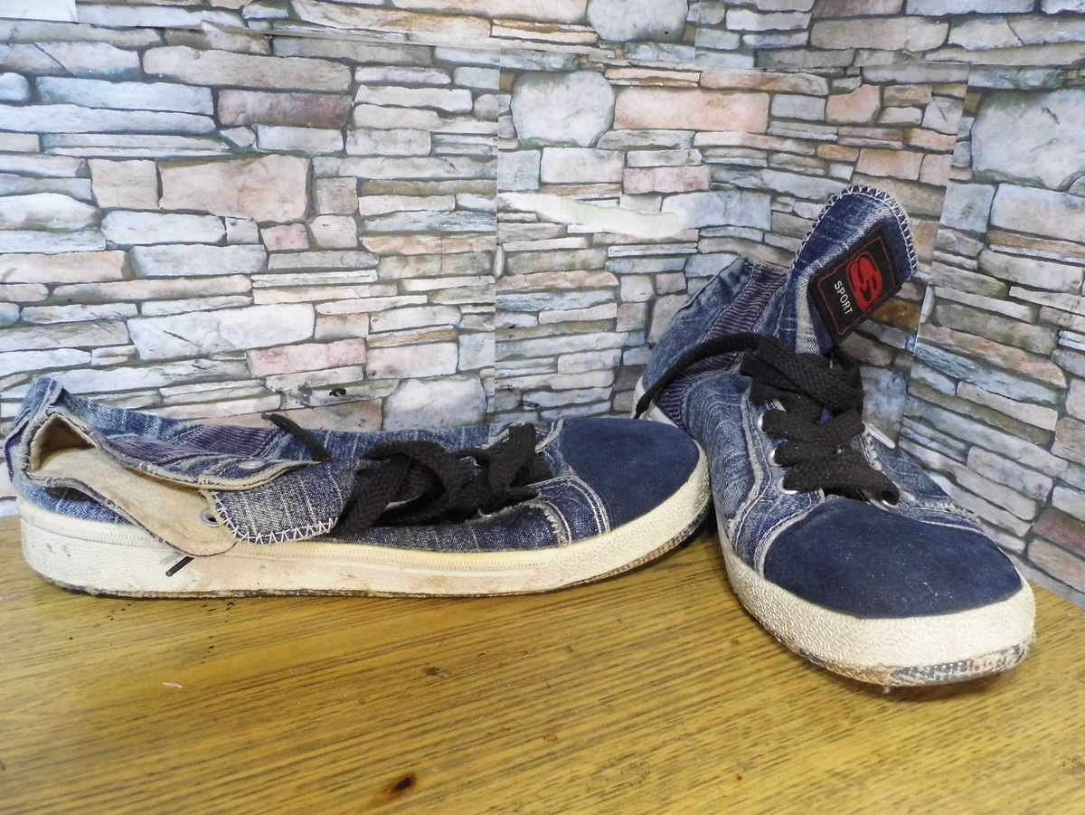 Вот, попался такой любопытный экземпляр. Кеды. С джинсовым верхом. Года два эксплуатации.