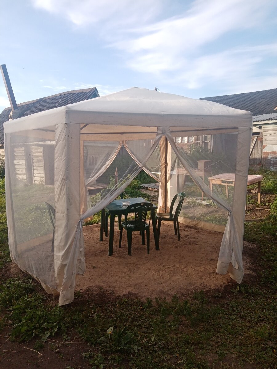 Как-то в далекомдалёком 2019 подарили мне шатер, по акции, с одного большого супермаркета. Поставил значит я его у себя на участке, но буквально после пары посиделок с ним произшло что то сранное. В один прекрасный день, вернувшись с работы я обнаружил что он лежит на крыше сарая и грустит. Возможно инопланетяне его пытались похитить, толи он сам пытался улететь, в теплые края может, дело то к осени было. Вообщем не вышло ничего у него, сломался. Каркас оказался ну очень хилым, особнно соеденители пластмассовые. И валялся он бы у меня он на чердаке и дальше, если бы не день рождения сына. Погода хорошая, ждали гостей много, и решил я его поставить. Доехал до одного супермаркета строительного, купил профиля 25х25 на три тыщи,взял пивка, ну и занялся делом. Замерил значит стазые запчасти и напилил новые такого же размера. Потом сварил шестиугольник. Подумал постоял немного. Решил надо сделать ноги сьемные.В рбрезкахобрезка откопал куски профиля 20х20,и приварил к шестиугольнику по углам