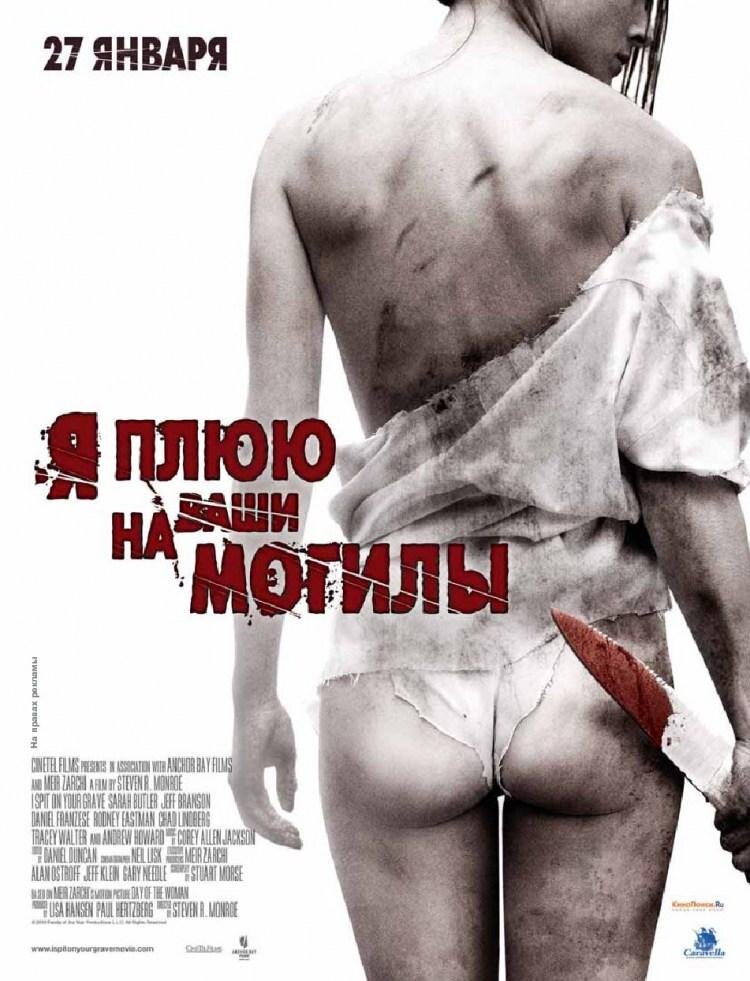 В ЖАНРЕ ужасы, триллер . Я плюю на ваши могилы год 2010 страна США слоган«It's Date Night» режиссер Стивен Р. Монро сценарий Адам Рокофф, Мейр Зарки продюсер Пол Хертцберг, Билл Берри, Сара Дж. Донохью, ...оператор Нил Лиск композитор Кори А. Джексон художник Динс В.В. Даниелсен, Бонни Штаух, Ernerst J. Levron Jr. монтаж Дэниэл Дункан жанр ужасы, триллер, ... Сюжет Молодая писательница Дженнифер снимает домик в глухом лесу, чтобы в уединении написать роман. Но издатель не дождется нового бестселлера… Четверо местных отморозков жестоко насилуют девушку и обрекают ее на мучительную смерть. Но Дженнифер сумела выжить и теперь ее единственная цель — месть. И месть эта будет столь ужасной, что бывшие насильники . Я плюю на ваши могилы 2 (2013г) Сюжет Красавица Кэти только что переехала в Нью-Йорк, чтобы сделать карьеру модели. Но девичьи мечты о роскошной жизни разбиваются: ее насилуют, пытают, а вскоре похищают и увозят в непонятном направлении. Кэти оказывается одна в