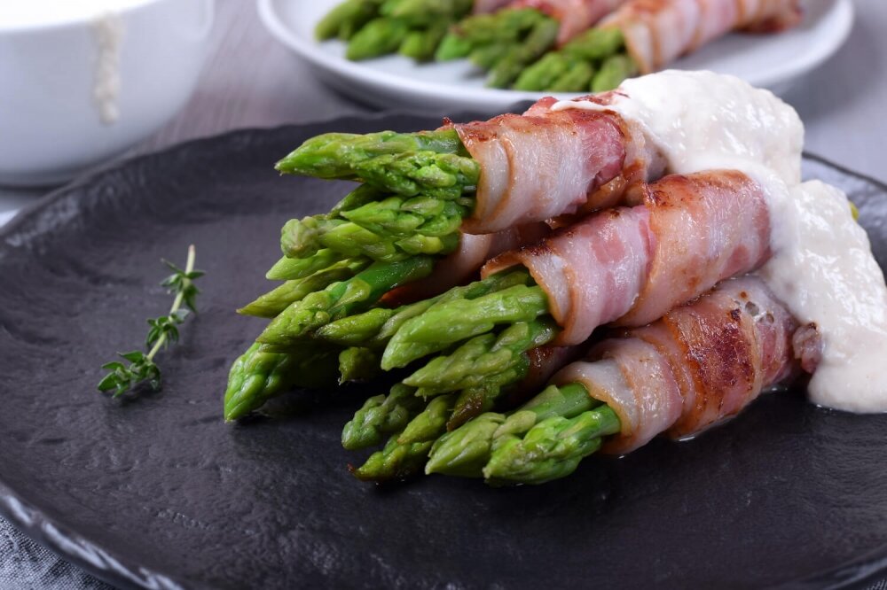 Спаржа является полезным, диетическим и очень популярным продуктом, особенно у любителей здорового питания. Однако спаржу, обжаренную в беконе, сложно назвать диетическим блюдом.