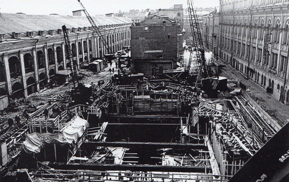 #Ретроспективаподземника возвращает нас в 1960-ые годы, когда велось строительство станции «Невский проспект». На фото строительство подуличного вестибюля и подземного перехода с выходами на Михайловскую улицу, Думскую улицу и Невский проспект.