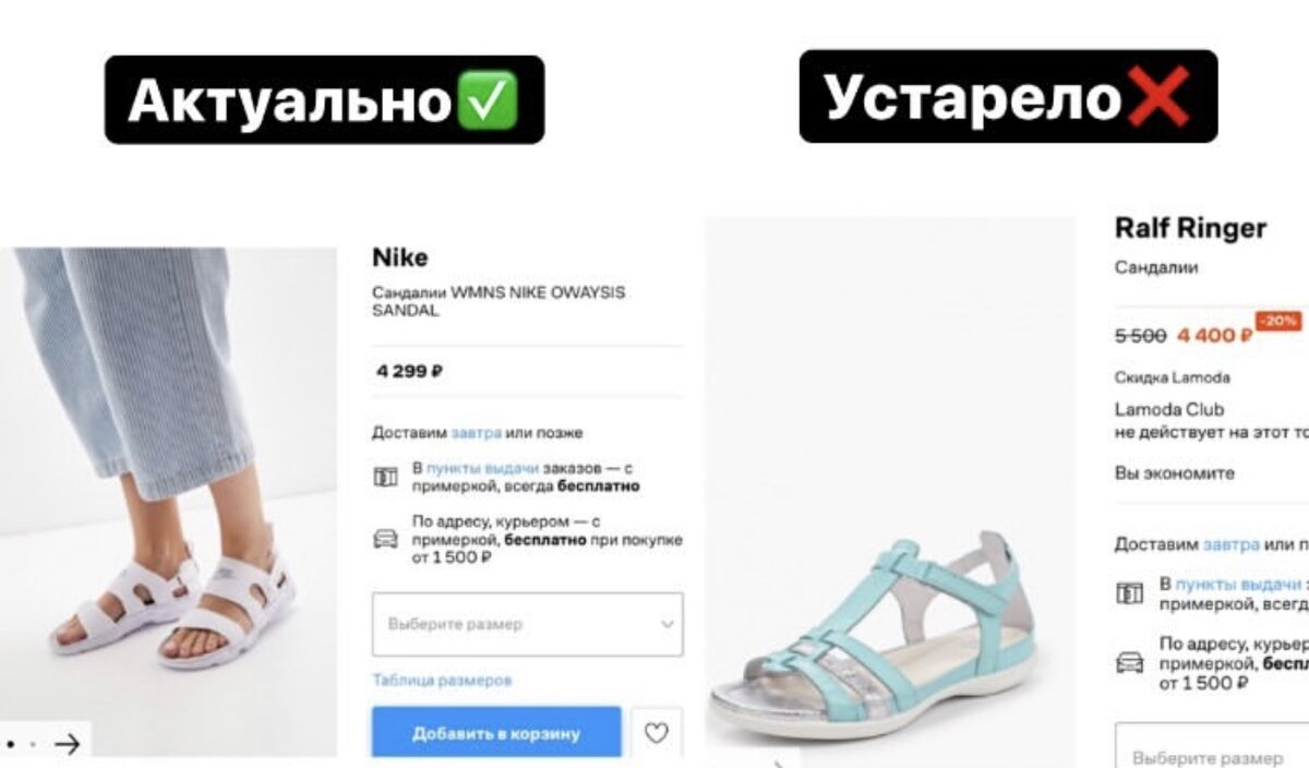 На примере спортивных сандалий можно увидеть разницу.