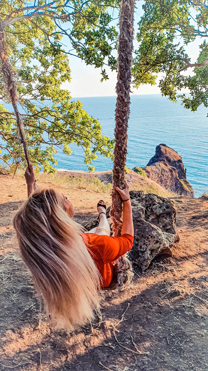 Мыс Фиолент- невероятно красивое место, обладающее таинственным прошлым. Каждый человек, прибывший на отдых в Крым, стремится посетить грот Дианы, известный также под названием мыс Лермонтова. Чем интересен грот Дианы на Фиоленте? Я в поиске ярких и интересных фото заинтересовалась качелей, к которой ведёт протоптанная дорожка со смотровой площадки. Спуск немного крутой, но однозначно стоит посетить эти качели и сделать пару кадров на память в этой необычной локации. Прямо по протоптанной дорожке мы оказалась на самом гроте Дианы, с которого открывается невероятный вид на море, пляж и скалы. Еще интересным является то, что сверху находятся мощные каменные породы, которые придают этому месту некоторую загадочность. Интересно это место будет и любителям экстрима, которые в поиске ярких ощущений. Грот Дианы представляет собой сквозной проход сквозь скалу длиной около 15 м. С обеих сторон мыса расположены пляжи. Поэтому подплыть к гроту Дианы можно на надувных матрасах или на яхте.