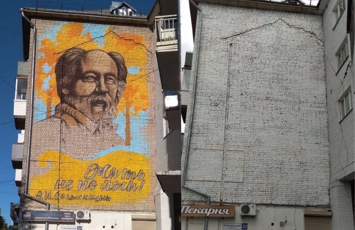 🤦🏻♂️ В Твери члены партии «Российский объединённый трудовой фронт» закрасили граффити с изображением Солженицына и фразой «Жить не по лжи» На сайте организации говорится, что изображение не согласовали с местными властями и теперь стена «очищена от грязи». Граффити появилось в 2018 году к 100-летию со дня рождения писателя. Рисунок выполнил местный художник Виктор Лебедев.