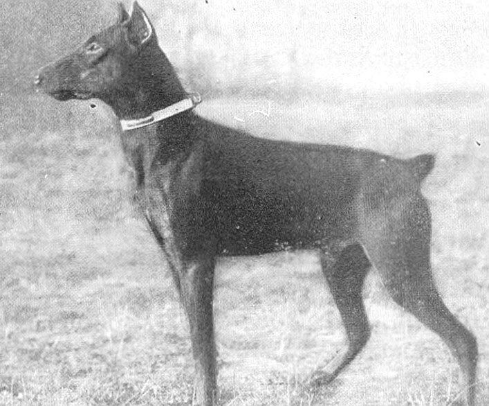 Для первых вязок он использовал "мясницких" собак (предки ротвейлера) и разномастных старонемецких пинчеров, попавших на живодерню Апольды (провинциальный городок в Тюрингии, малая родина). Но потомству, помимо желанных качеств, передавалась излишняя возбудимость и неуправляемость.