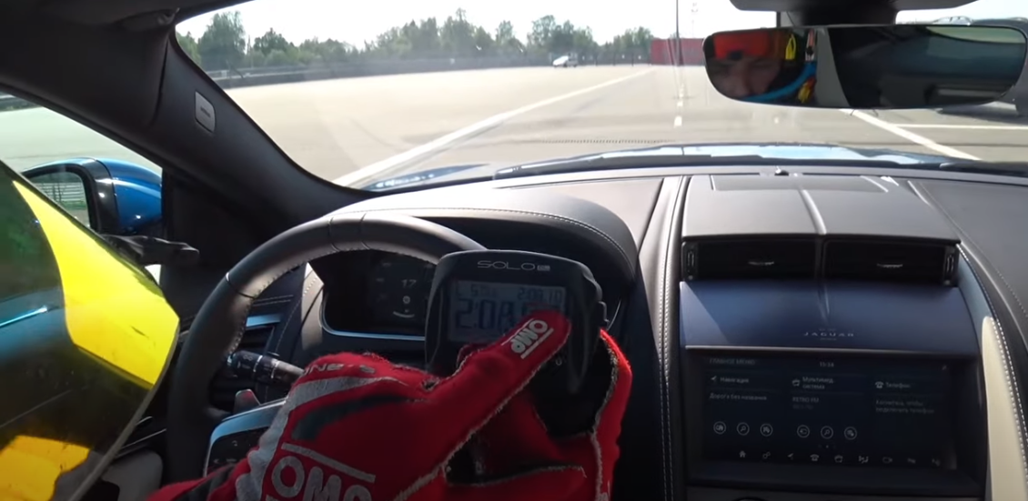 Обновленный Jaguar F-Type P380 AWD под управлением вице-чемпиона России по кольцевым гонкам, Ефима Гантмахера, на Moscow Raceway в конфигурации Gran Prix 10 (3 985 метров, 16 поворотов)