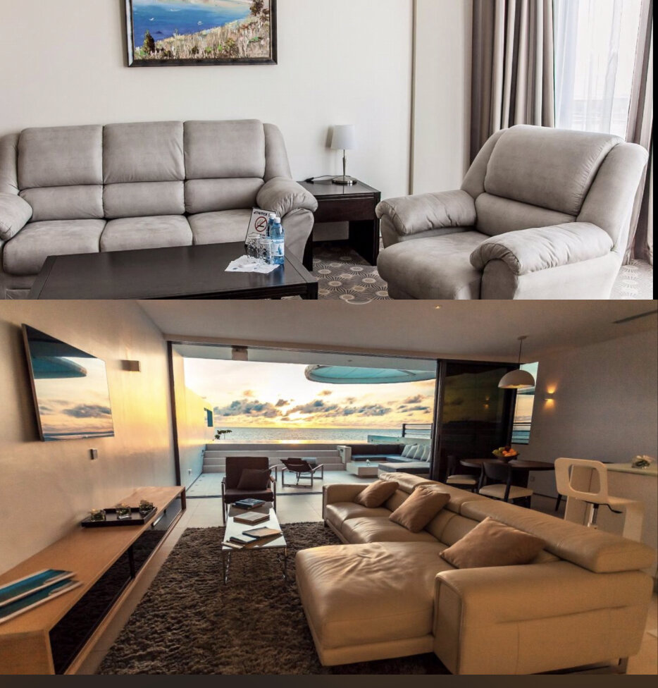 Смотрим одни сутки, начиная с завтра. Ценник от 23.300 рублей за скромный стандарт с видом на жилмассивы до 40.950 рублей за «шикарный люкс с одной спальней с видом на Чёрное море». Это со скидкой уже 10 процентов.