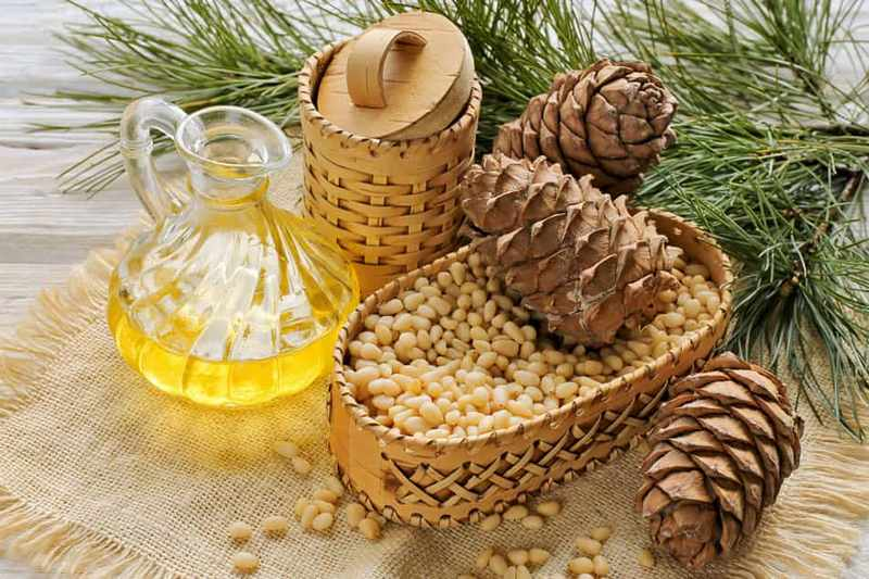 Масло кедрового ореха – ценный и востребованный продукт. Он изготовляется из семян, располагаемых в шишках кедровой сосны. Чтобы получить 1 килограмм этого средства, требуется поддать переработке 3 килограмма орехов в сыром виде. Выжимка из семян, очень богата на макро- и микроэлементы, витамины и другие питательные компоненты.