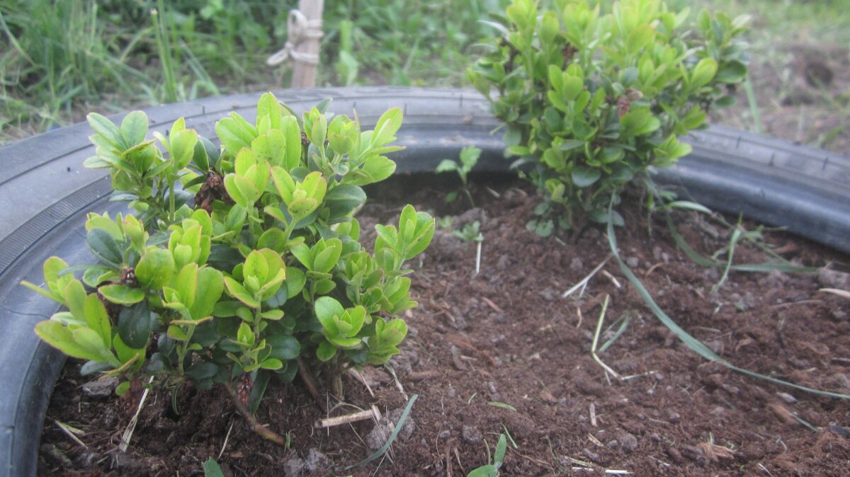 Купила пакет верхового торфа и смешала его с огородной землёй в автомобильной покрышке, чтобы кислую среду не вымывало, и так торф там и есть до сих пор, а растеньица после заморозков пошли в рост, закустились, дали множество новых побегов, что и можно видеть на первом фото.