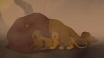Здесь нам показана смерть отца львенка Симбы - короля Муфасы. Хитрый дядя Шрам подстроил все таким образом, чтобы создать опасную ситуацию для доверчивого львенка. Самоотверженный отец спас своего сына, но сам спастись не смог, получив "нож в спину" от родного брата, жаждущего власти.