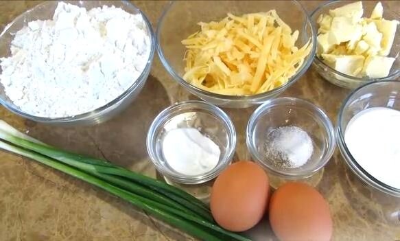 Сырные сконы с зеленым луком #Рецепт вкусных, сырных и очень рассыпчатых сконов с луком. Обещаю будет вкусно и заморачиваться не придется. Отличный перекус, для тех, кто любит домашнее сырное печенье. Что понадобится: Как будем готовить: 1. Для начала подготовим необходимые нам продукты. Сливочное масло вынимайте из холодильника прямо перед приготовлением. На крупной терке натрем сыр. 2. В миске перемешаем муку с разрыхлителем и солью. Добавим сливочного масла в массу и перетрем все в крошку. 3. Зеленый лук мелко нашинкуем. 4. В чашке соединим сыр, лук и мучную смесь. Все перемешаем. 5. Вилкой взбиваем яйца и сметану. 6. Сметанно-яичную смесь выливаем в в мучную смесь и вымешиваем тесто руками около 5 минут. 7. Разделим тесто на 2 части. Стол чуть припудрим мукой и каждую часть раскатаем в круги, толщина которых около 1 см. Разрежем круги на 5-6 сегментов. 8. На смазанный маслом и чуть припудренный мукой противень выкладываем наши заготовк