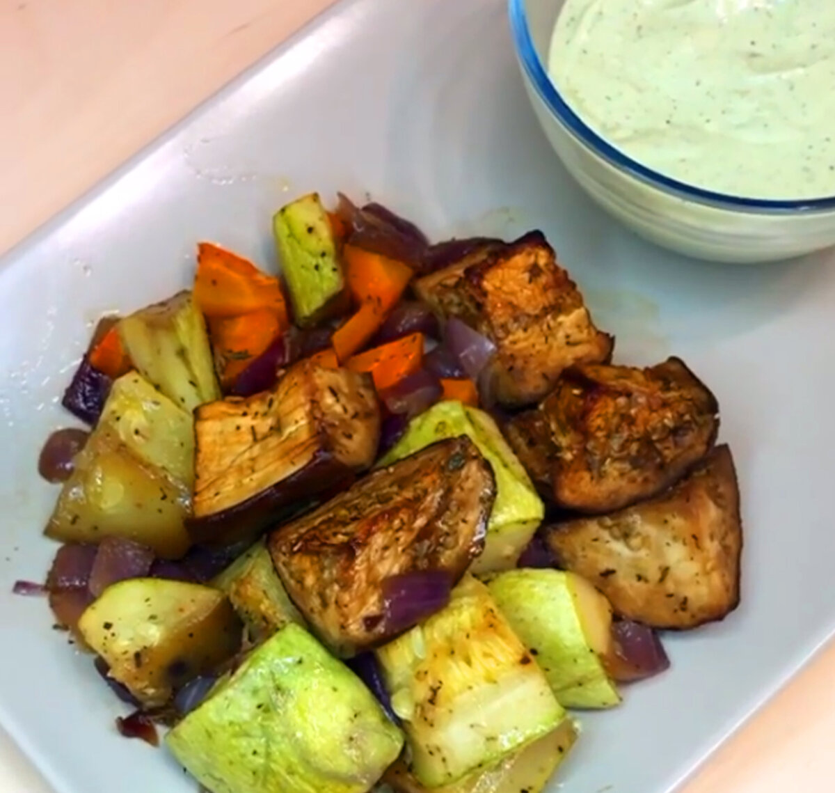 ➡️Нарезать кубиками все овощи. ➡️Далее добавить соль, чеснок, тимьян, итальянские травы, соевый соус. ➡️Перемешать. ➡️Выложить на стеклянный противень, добавить растительное масло. ➡️В разогретую духовку при 200С выпекать 25 минут. ➡️Можно подавать готовые овощи с любым соусом. У меня сметанный. Приятного аппетита! Ставьте лайк и подписывайтесь, чтобы не пропускать простые рецепты от шефа.