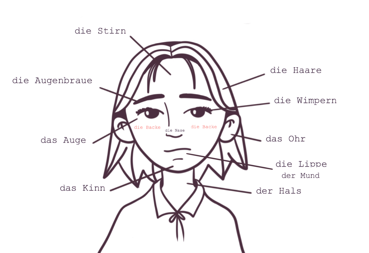 Сегодня поговорим о нашем лице и узнаем, как же будут звучать отдельные части лица на немецком.