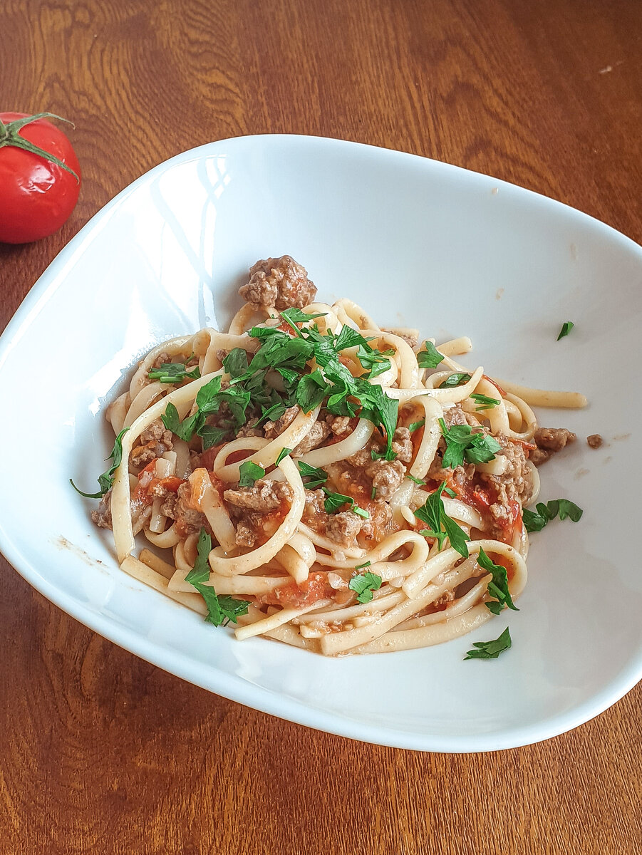 ⠀ ⠀ 📢Подписывайтесь, ставьте лайки❤ и сохраняйте рецептик 📌⠀ ⠀ ⠀ 👌Простой, вкусный и доступный рецепт пасты болоньезе ⠀ ⠀ 👌Не требует особых усилий ⠀ ⠀ ✅ИНГРЕДИЕНТЫ ⠀ ⠀ • 200 гр спагетти ⠀ • 100 гр соуса Краснодарский ⠀ • 2 помидора⠀ • 200 гр говяжьего фарша ⠀ • зелень⠀ • соль, перец по вкусу ⠀ ⠀ ✅ПРИГОТОВЛЕНИЕ ⠀ ⠀ ■ Отвариваем спагетти в подсоленной воде ⠀ ■ Обжариваем фарш, солим, перчим⠀ ■ Режем помидоры кубиками и отправляем в фарш⠀ ■ Добавляем соус и немного воды. Теперь тушим до готовности ⠀ ■ Затем добавляем отваренные спагетти и перемешиваем, не сбавляя огня, примерно 5 минут⠀ ■ При подаче можно добавить зелень⠀ ⠀ 🍝ПРИЯТНОГО АППЕТИТА 💛⠀ ⠀ @sv.eat.food ⠀ ⠀ #спагетти #болоньезе #паста #ужин #вкуснопросто #простобыстро #рецепты ⠀ #followme ⠀ #likeme