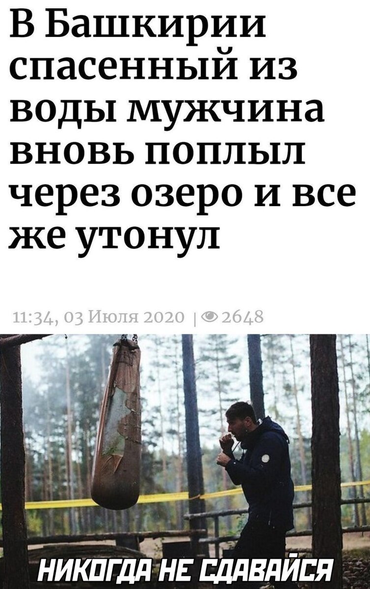 В Башкирии спасенный из воды мужчина вновь поплыл через озеро и все же утонул🤦