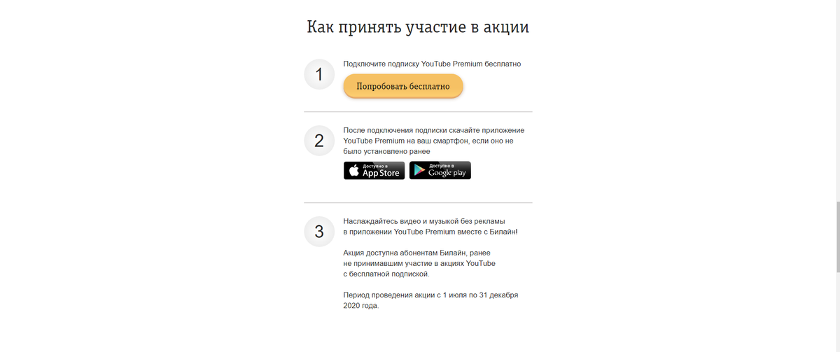 Страница акции: https://moskva.beeline.ru/customers/products/youtubepremium/ (F.A.Q в конце страницы)