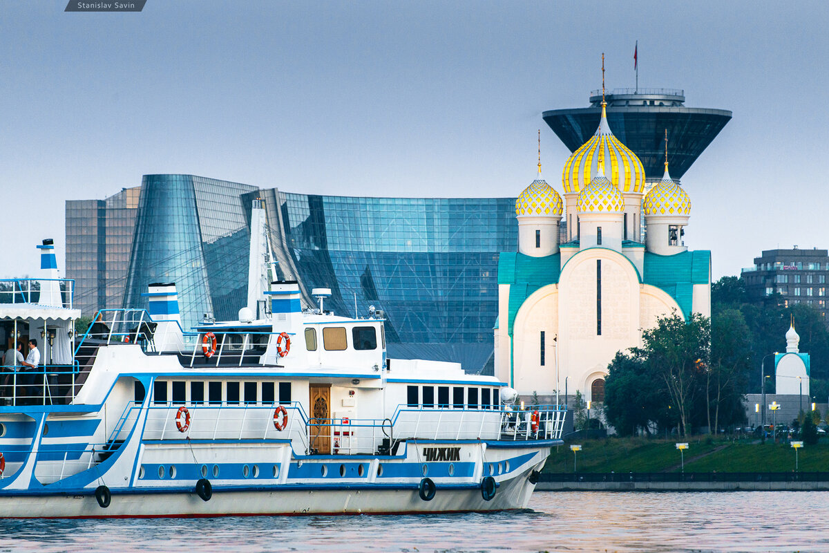 Как говорится: этот вид настолько ужасен, что становится даже прекрасным. Нагромождение стилей: футуризм здания правительства Московской области на фоне и светящиеся неоном, как в Лас-Вегасе, купола церкви Николая Чудотворца, и всё это в окружении бетонного гетто Павшинской поймы.