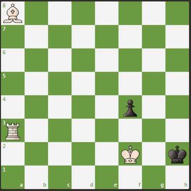 Шахматная задача, автор задачи П. Рожков, 2007 год. У белых: ладья и слон. У черных только пешка. Белые начинают и ставят мат в 2 хода.