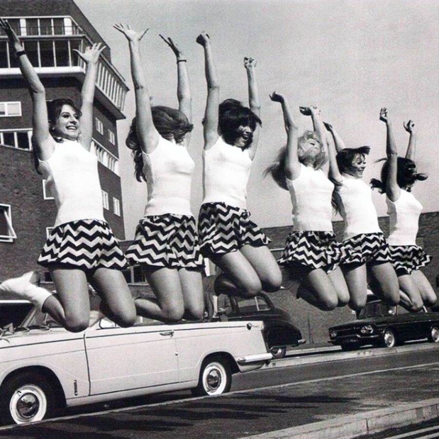 Либо же это была англичанка Mary Quant. Она на фото отличается от остальных девушек.