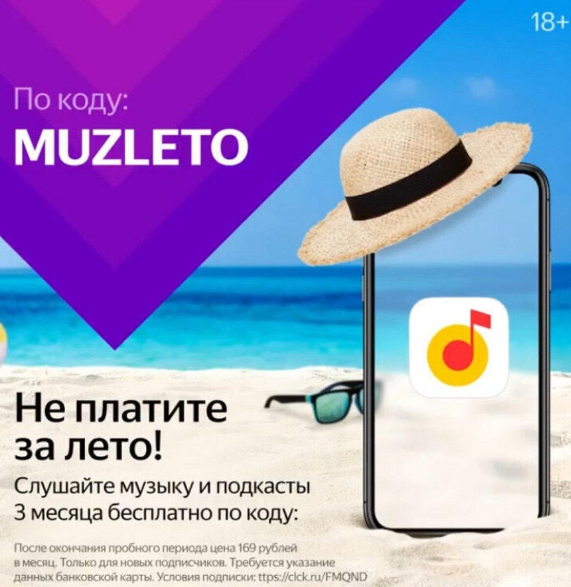 Доброго времени суток! В предыдущем посте мы уже говорили об актуальности подписок на музыкальные сервисы, поэтому будет кратко и по делу) Переходим по этой ссылке и активируем промокод - MUZLETO *не только для новых пользователей **получая подписку на музыку, вы автоматически получаете статус Плюс на аккаунте Яндекс, что дает Вам выгодные использование всех сервисов Яндекс и не многие знают, но и КиноПоиск в их числе! И само собой не забываем отключить в управлении подпиской автопродление!!! А так же не забывайте про инстаграмм, в котором так же публикуются все выгодные предложения и акции и иногда можно найти те, что не вы не встречали тут😇 Хорошего настроения и приятного прослушивания!😊😊