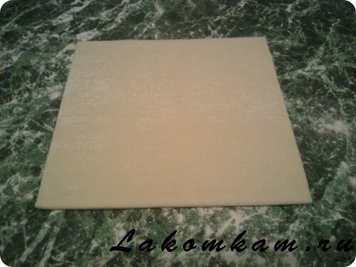 Берем пластину слоеного теста и раскатываем.