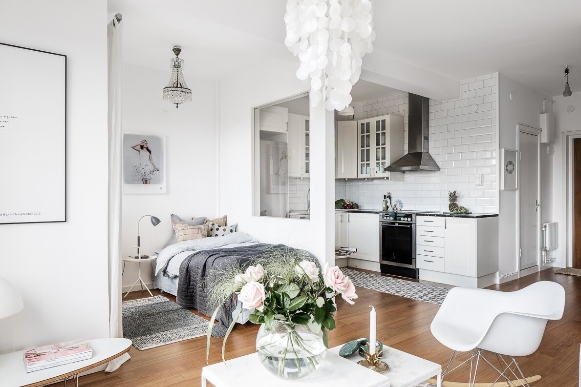 А если вы твердо уверены, что не хотите делить квартиру на маленькие комнаты и жить потом в "коробках из под обуви", что ваш выбор это просторный интерьер и много воздуха, не торопитесь сразу сносить все стены. Сначала правильно продумывайте зонирование.