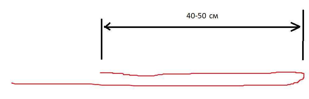 Первое что необходимо это сложить леску вдвое на 40- 50 см (примерно длина от кончиков пальцев до локтя)