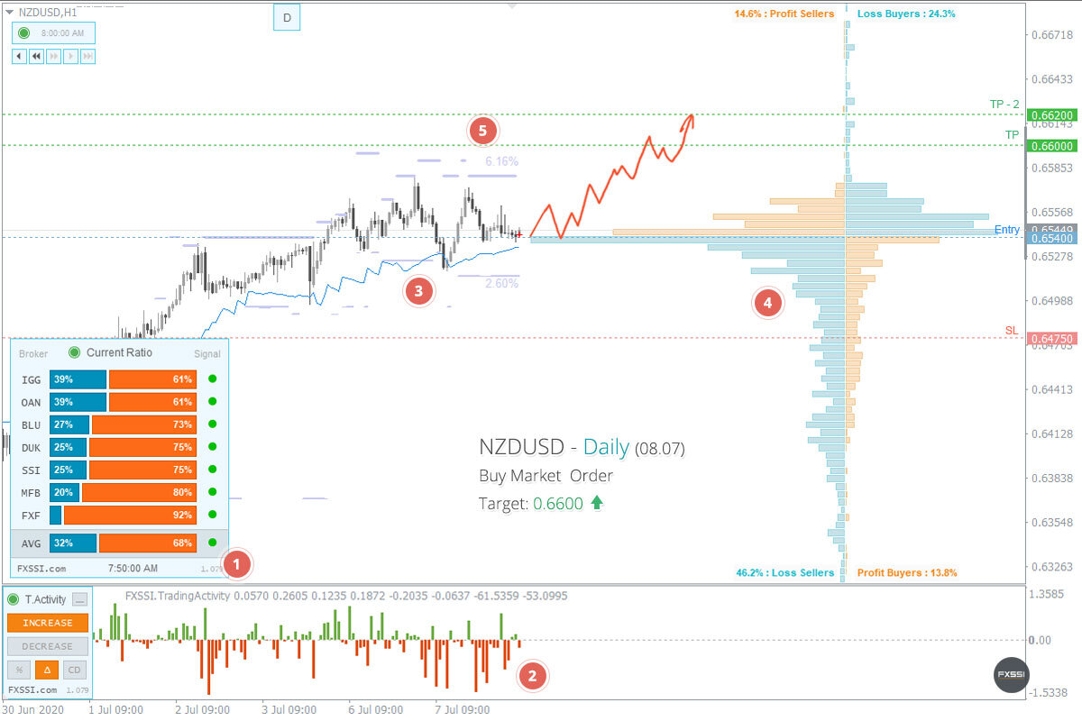 - Показания индикатора Current Ratio дошли до критических значений, слишком большое количество трейдеров ожидает нисходящего движения. В таком случае движение вниз маловероятно, рекомендованы покупки.