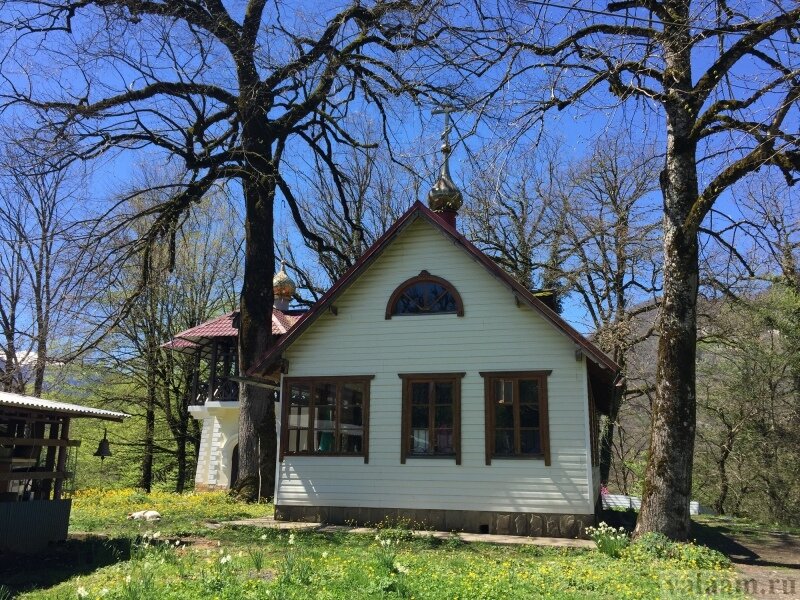 Для нас этот день – особый день, поскольку наш скит носит имя Владимирской иконы Божией Матери. Именно в этот день маленький храм, созданный в горах на Кавказе, был освящен в честь Владимирской иконы Божией Матери, и именно в этот день, 3 июня, в день памяти Владимирской иконы Божией Матери, была отслужена первая Божественная литургия. Прошло уже 20 лет с тех пор, как наш епископ, а тогда архимандрит, Панкратий, игумен Валаамского монастыря вместе с иеромонахом Си́моном Бескровным, которого многие читатели знают под псевдонимом Симеон Афонский, приехали сюда вместе, чтобы найти место для уединенного скита. И место это им понравилось. Здесь решено было основать скит от Валаамского монастыря. Это было 20 лет тому назад.