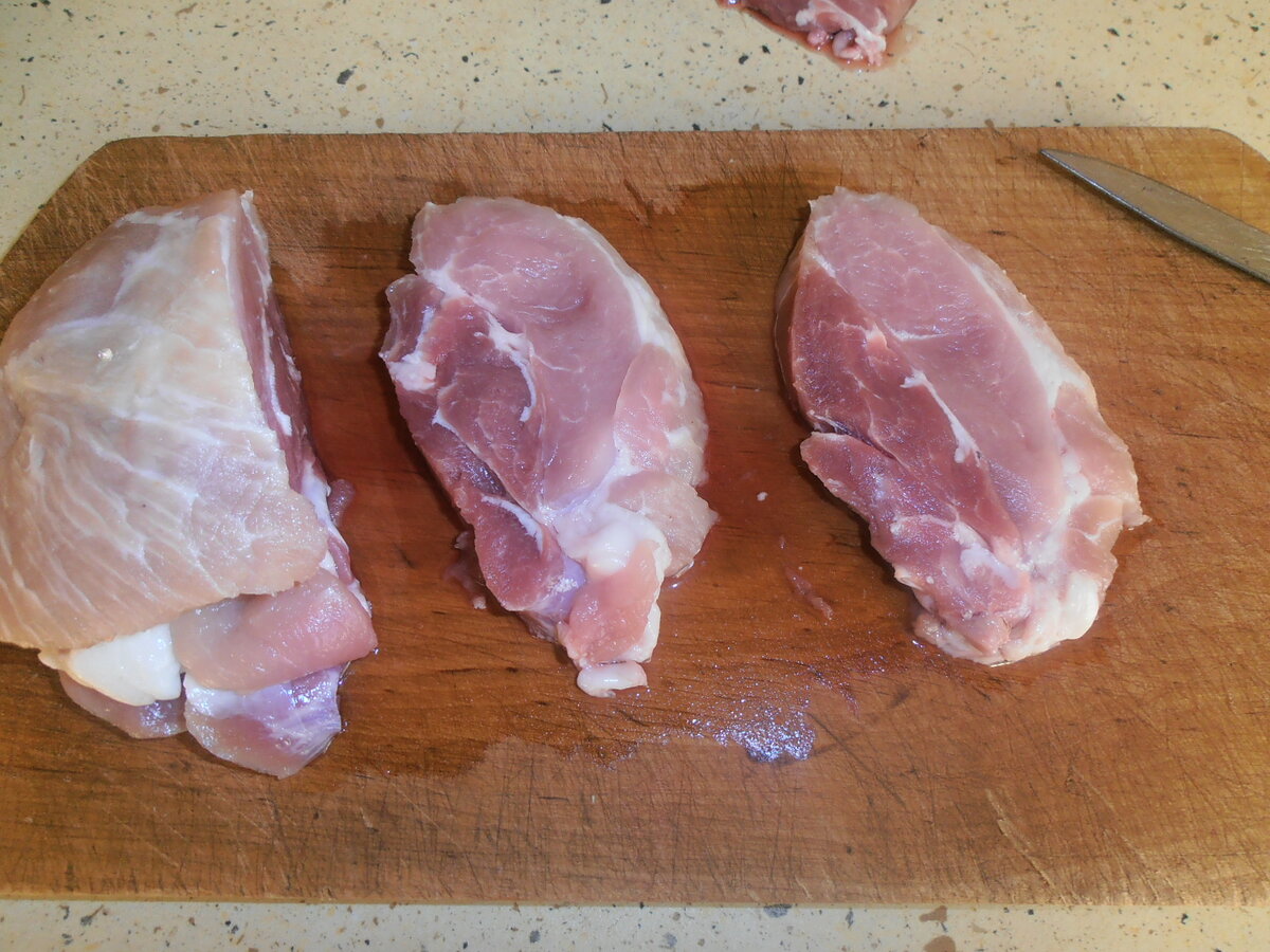 1. Карбонад разрезать на стейки толщиной около 1-1,5 см.