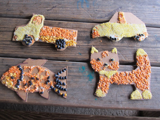 Или делать аналогичные картинки из разной крупы и гороха, но уже на клее ПВА.
