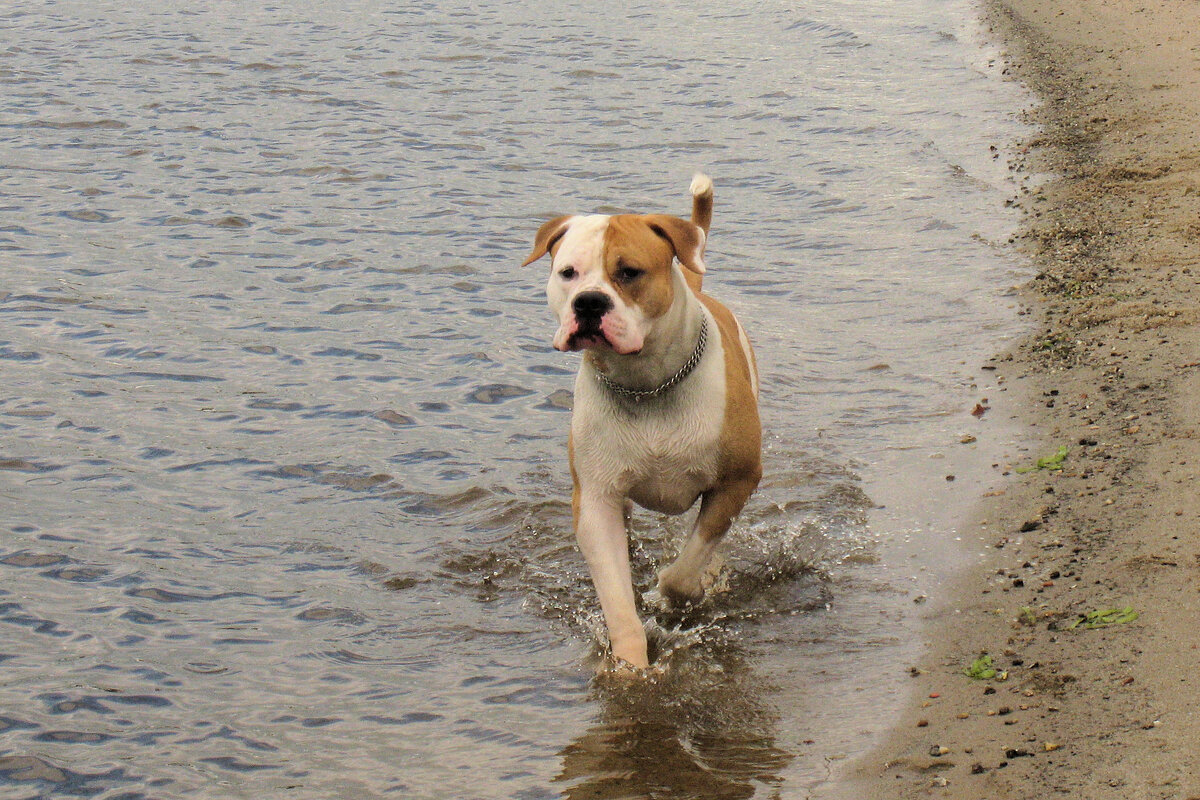Мы все прекрасно понимаем, что если человек вполне может летом одеться по погоде, то у наших четвероногих друзей такой возможности нет, они и зимой, и летом продолжают ходить в своих шубах. И понимая, насколько им жарко, мы постоянно искали возможности, как же создать им нужную атмосферу. Во-первых, дома мы установили кондиционер, и когда уходили на работу - включали его, чтобы (на тот момент ещё) американскому бульдогу Сашке было не так жарко. Во-вторых, старались каждый вечер вывозить куда-нибудь покупаться. И сегодня я хочу рассказать как раз о том, как нелегко было найти места для купаний. Не то, чтобы у нас мало водоемов, просто в основном на них на всех - очень много народу, который вряд ли будет жаждать купаться рядом с большой бульдожкой. Плюс ко всему, на пляжах постоянно много детей, которые вроде и тянутся к собаке, и Сашка отвечает им взаимностью, но вот родители сильно боятся подпускать детей к нашему мощному другу. Поэтому мы стали ходить по неизведанным местам, каждый ра