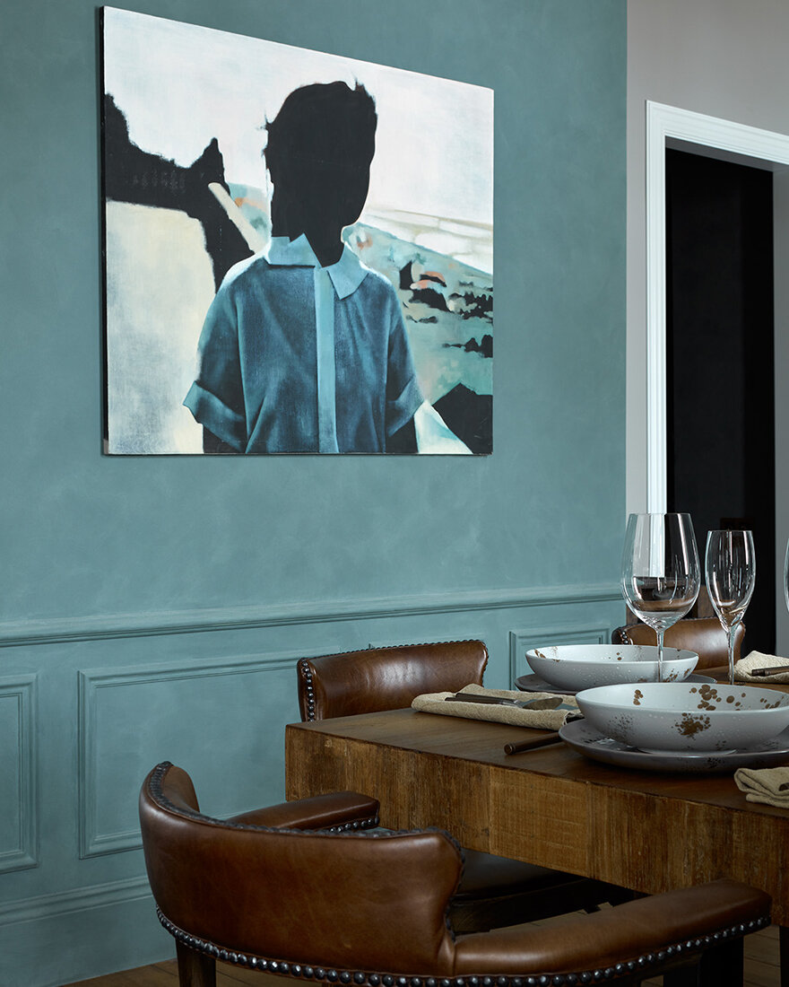 Открывшийся после демонтажа фактурный старый кирпич удалось сохранить только на внешних стенах, его аккуратно очистили. В столовой на акцентной стене применили декоративную штукатурку, в остальных комнатах использовали краску Little Greene.