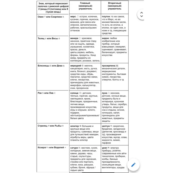 Посмотрите, какой знак пересекает нужная палочка и найдите на круге планету, которая им управляет с помощью таблицы управителей - лучше выбрать ту планету, которая по символизму больше похожа на пропавшую вещь или животное. Если такой планеты нет, берите из первой колонки. ⠀