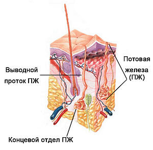 Клетки потовых желёз (ПоЖ). Клетки потовых желёз (ПоЖ) (кожных желез человека, выделяющих пот, относящихся к железам внешней секреции и подразделяющиеся на два типа: эккриновые потовые железы, которые выделяют секрет, который при выделении не повреждает клетки и апокриновые потовые железы, которые при секреции отделяют апикальные участки клеток), выполняют определённые функции в теле человека: участвуют в терморегуляции (выделяют пот, который при испарении охлаждает тело, что спасает его от перегрева); выводят из кожи с потом воду, продукты катаболизма (обмена веществ в организме), не нужных солей, лекарств, тяжёлых металлов; формируют индивидуальные запахи человека (не приятные запахи могут быть симптомами нарушения здоровья). Клетки эккриновых потовых желёз (ЭПоЖ). Клетки эккриновых потовых желёз (ЭПоЖ) (являются основными потовыми железами человека, которые располагаются практически по всей поверхности кожи, 200—400 желез на 1 см² поверхности кожи, но особенно много их на лад