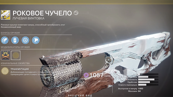 6. В завершении отправляйтесь к Теневому дешифровщику и используйте полученный «Облик». В качестве награды вас будет ждать экзотическая лучевая винтовка «Роковое чучело».