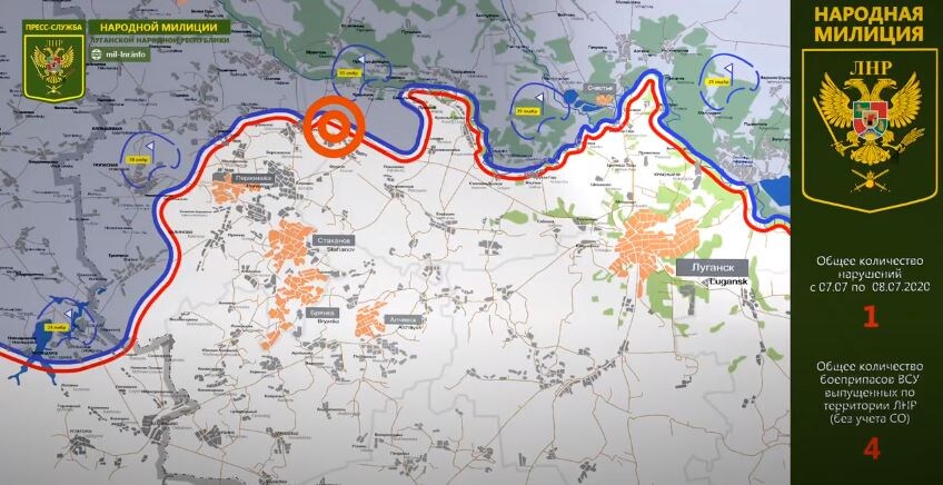 8 июля 2020 г. Обстановка на линии соприкосновения за сутки | Карта обстрелов