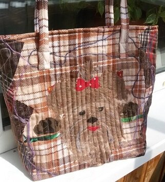 В сегодняшней сумке я решила применить вязальные нитки. И не просто применить, а сделать картинку. И вот у меня получилась картинка, правда совсем не та которую я хотела. Ну я художник-то ещё тот! Хотела –то я мордочку йорика (и подруге подарить, у нее йорик есть), а получилась мордочка бармалейчика. Правда, сын сказал, что на йети похоже. Короче, придется теперь дома оставить эту сумочку – с таким непонятным существом дарить никому не буду, боюсь, поймут меня неправильно. Буду с ней за картошкой ходить и собак уличных отпугивать.