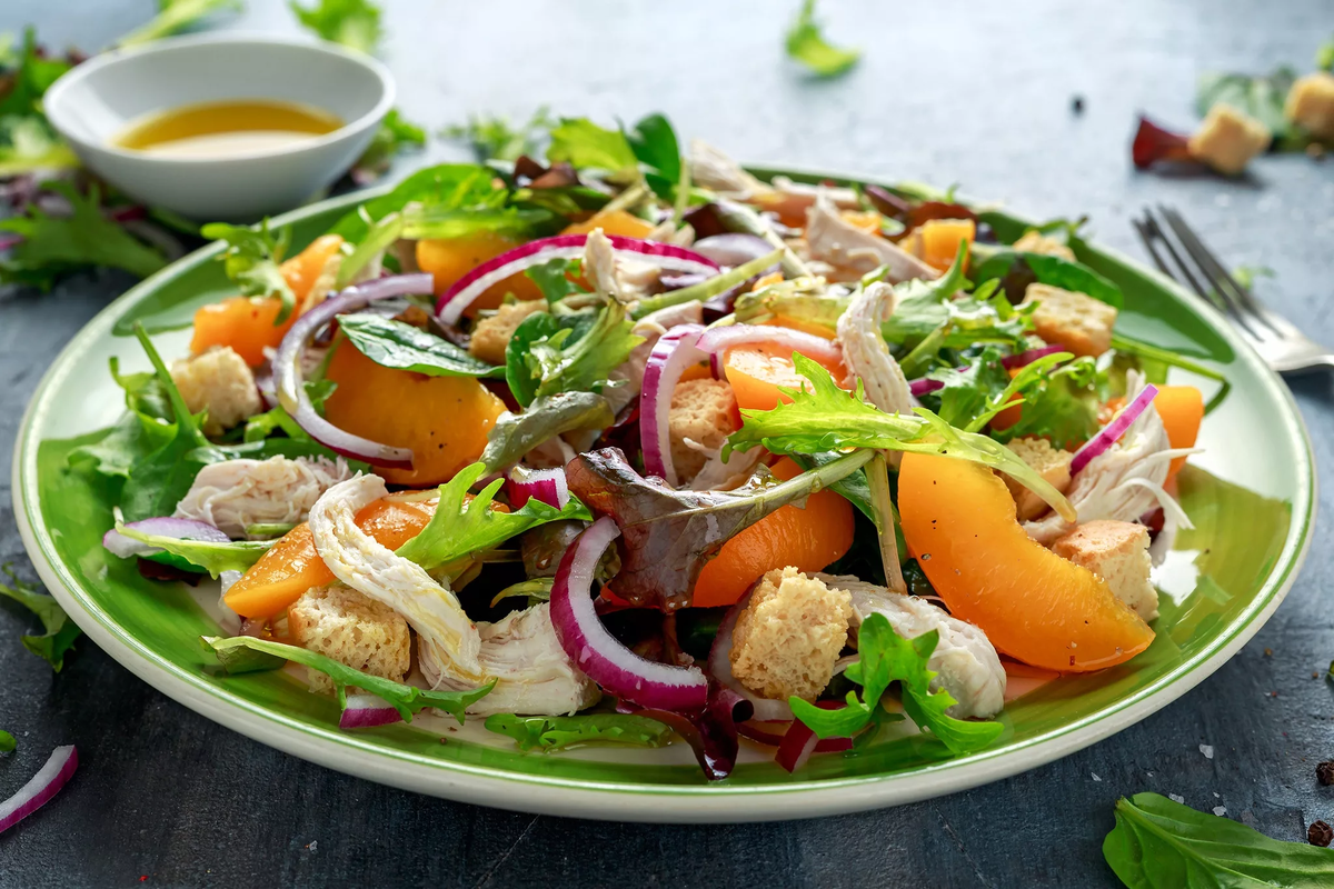 Приветствую тебя, дорогой читатель. Сегодняшний рецепты сделают твою вечернюю трапезу незабываемой. Представляю твоему вниманию два рецепта... Салат "вечерний" Ингредиенты: 1. Кальмары промыть, удалить хитиновую пластинку, остатки внутренностей и поверхностную пленку. Залить горячей водой и варить с солью 5 минут. Охладить и нарезать соломкой. 2. Стручки перца и яблоко нарезать соломкой, апельсин - ломтиками. 3. Все перемешать. 4. Подготовленные продукты и кукурузу уложить слоями на листья зеленого салата, посыпая тертым сыром, полить растительным маслом Отбивные, тающие во рту Ингредиенты: 1. Для маринада зелень мелко порубить, добавить нарезанный кольцами чили, масло, соль, черный перец, лимонный сок и перемешать. 2. Корейку разрезать на порционные куски по ширине косточек, отбить и положить в маринад на 2 часа. 3. Отбивные обжарить на гриле до готовности. 4. Уложить отбивные на листья салата и подавать с овощами, нарезанными дольками и заправленными йогуртом. Если вам понравился р