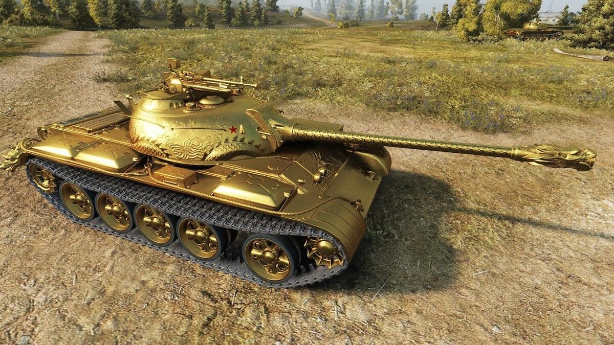 Китайский средний танк. Изначально являлся копией советского среднего танка Т-54А. Принят на вооружение в 1959 году. У первых выпущенных танков отсутствовали стабилизатор вооружения и прибор ночного видения. В дальнейшем танк постоянно модернизировался. Всего с 1958 по 1987 год выпущено, по разным сведениям, от 6000 до 9500 машин всех модификаций. такой стиль танка продавался на черном рынке в 2020 году, стоимость этого танка начиналась от 25 000 золота, и как не странно раскупили такой танк за считанные минуты, но их было не большое количество (1000 танков ) характеристики танка: По своим параметрам обычный Type 59 ничем не отличается от Type 59 Gold. Разница в уникальном стиле. Столь не впечатляющие цифры обусловлены тем, что у танка льготный уровень боев, что является одним из его главных преимуществ. Вторым важным плюсом является повышенная доходность (но коэффициент не предается огласке). Однако последний пункт сводится на нет голдозависимостью машины, потому что у базового
