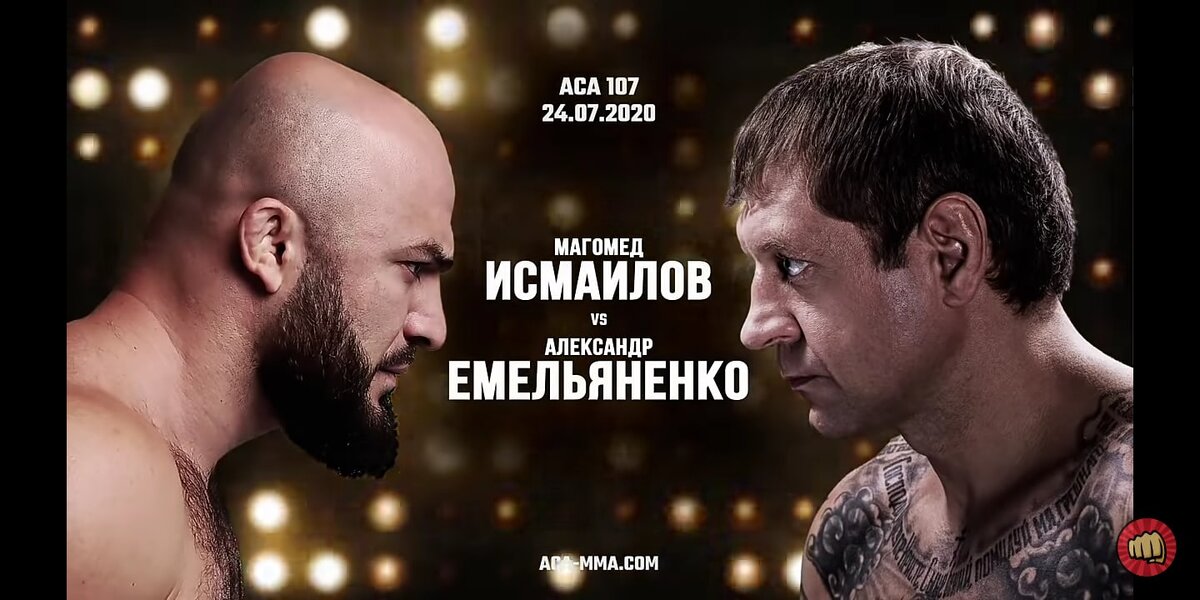 Президент ACA Алексей Яценко назвал новую дату боя между Александром Емельяненко и Магомедом Исмаиловым. Этот самый долгожданный бой в мире совершится 24 июля 2020 года. Бой произойдёт в тяжёлом весе. Видно что по показателям Александр Емельяненко превосходит Магомеда Исмаилова. Несмотря на большую разницу в росте, Магомед Исмаилов не испугался выйти на бой с Александром Емельяненко. Идея боя: Идея боя возникла у Магомеда Исмаилова ,потому что Александр Емельяненко сказал , что настучит ему по его лысой башке. Слова Александра Емельяненко на интервью перед боем: "Он драться не умеет, аганин набрал,он в 80 еле ходил, 5 минут отстоял и сдох.А что будет при весе когда он ещё набрал 100 кг, да он через 20 секунд сдохнет!"