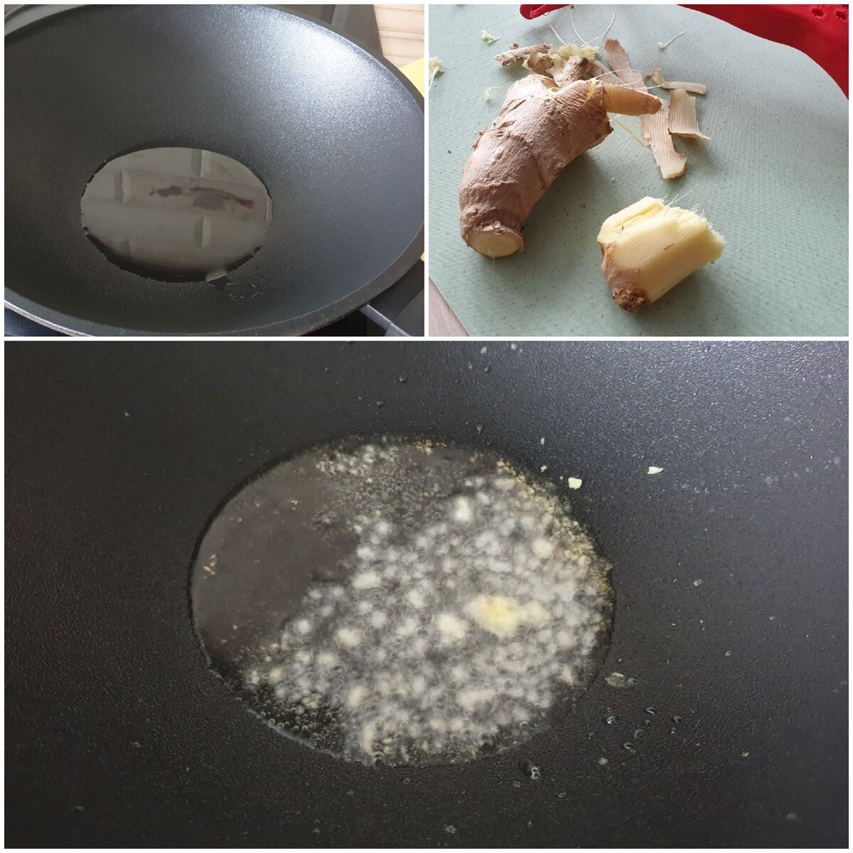 В разогретое масло добавляю немного натертого имбиря, для пикантного вкуса.