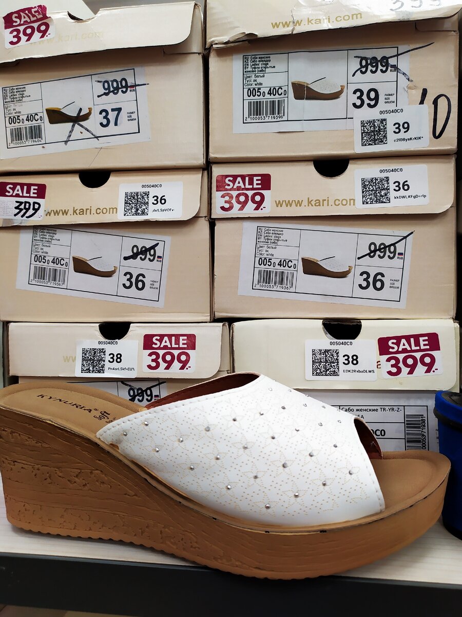 Теперь и в нашем городе появился ещё один магазин с дешёвыми ценами на обувь. И это KARI. Раньше цены на босоножки в этой сети были от 850 рублей и выше, а теперь после посиделок дома почти 2 месяца, что-то видимо закоротило и замыкание привело к грандиозной распродаже. И сейчас за небольшие деньги со скидкой в 30% можно купить совсем даже приличную обувь, которую я вам хочу предложить к