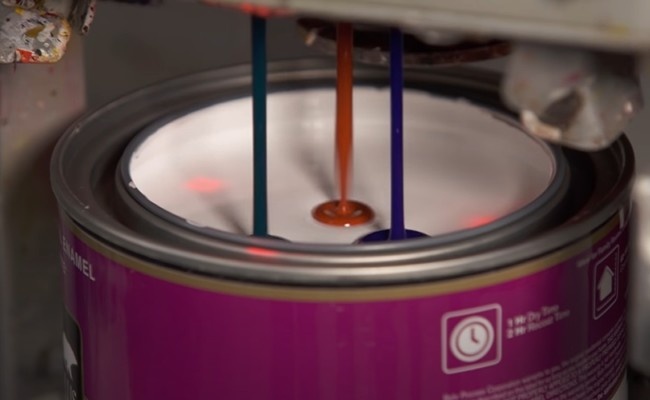 Перед разведением красящего состава подготавливаются емкости для измерения. Они позволят определить пропорции для получения нужного цвета. Также следует изучить инструкцию производителя краски, чтобы понять, какой объем колера допускается вводить в нее. Шаг №1: получение экспериментального образца Перед смешиванием проводятся испытания с использованием составов в небольшом количестве, то есть сначала изготавливается пробный вариант. Желательно применять 100 мл краски для разбавления, чтобы было проще определить подходящие пропорции для создания оттенка. Далее рассчитывается общий объем рабочей смеси для окрашивания поверхностей. При изготовлении экспериментального состава рекомендуется пользоваться тарой с узким горлышком. Цветной пигмент добавляется небольшими порциями с точным учетом количества. Когда рабочая смесь будет доведена до оптимального состояния, следует записать объем вводимого колера. Шаг №2: нанесение пробника на поверхность Зная, как правильно колеровать краску вручную,