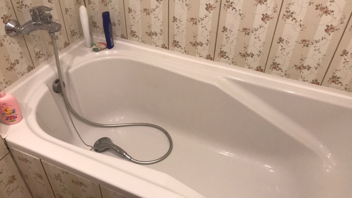 Помимо плесени, в моей ванной комнате есть и другая проблема: строители, которые устанавливали сантехнику, оставили слишком большой зазор между ванной и стеной. Он больше сантиметра. Засиликонить такую щель было очень сложно. Осталась небольшая ложбина, где постоянно скапливалась вода. Я попробовал найти решение проблемы в Интернете. Изучив то, что предлагают другие пользователи Сети, решил в итоге прибегнуть к специальной бордюрной ленте для ванн. Это была ошибка.