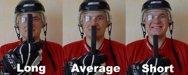 При покупке клюшки главным критерием выбора является ее длина. Для опытных спортсменов смена инвентаря не вызывает сложностей, так как обычно они знают, что им нужно. Однако, стоит учитывать, что от длины клюшки во многом зависит стиль игры. Например, играя длинной клюшкой, игрок не может похвастаться эффективностью в дриблинге, а выбирая для себя короткую клюшку, не стоит пытаться совершить удар по воротам так, как это делают защитники (в большинстве случае они используют во время игры длинные клюшки). Правила измерения длины клюшки Выбор длины стоит делать стоя на коньках. Это связано с тем, что коньки прибавляют в росте несколько сантиметров, и выбирая амуницию без спортивной обуви можно ошибиться. При проведении измерений необходимо смотреть вперед, а клюшку держать параллельно телу, делая опору на нос крюка. Для игроков начального уровня оптимально выбирать клюшку средней длины или Average. Чтобы подобрать такой вариант стоит остановить выбор на клюшке, высота которой окажется в п