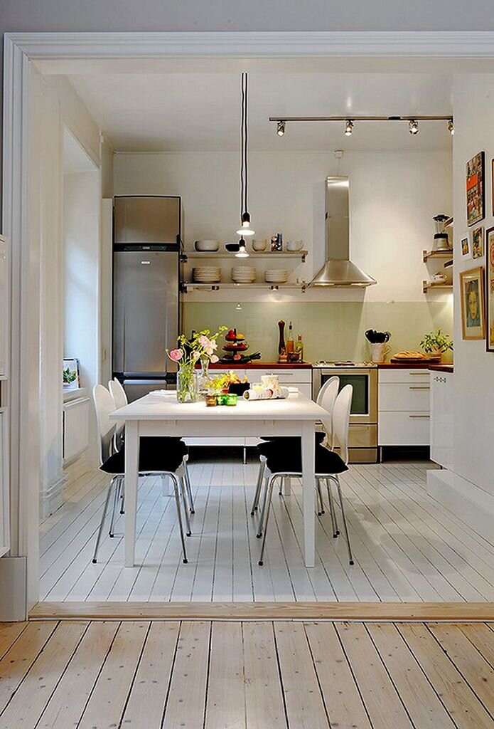 В том случае, когда хозяевам квартиры надоели постоянные шумы и запахи с кухни, то их распространение можно немного предотвратить, установив по периметру кухни перегородки, которые не будут просвечивать и позволять проникать излишним частичкам света из кухни в соседнее помещение. Такой способ является удобным и позволит не загромоздить небольшое по площади пространство.