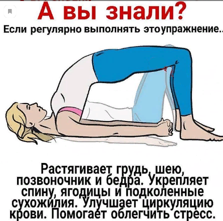 🔸️Мостик тренирует мышцы ягодиц, ног и живота.
