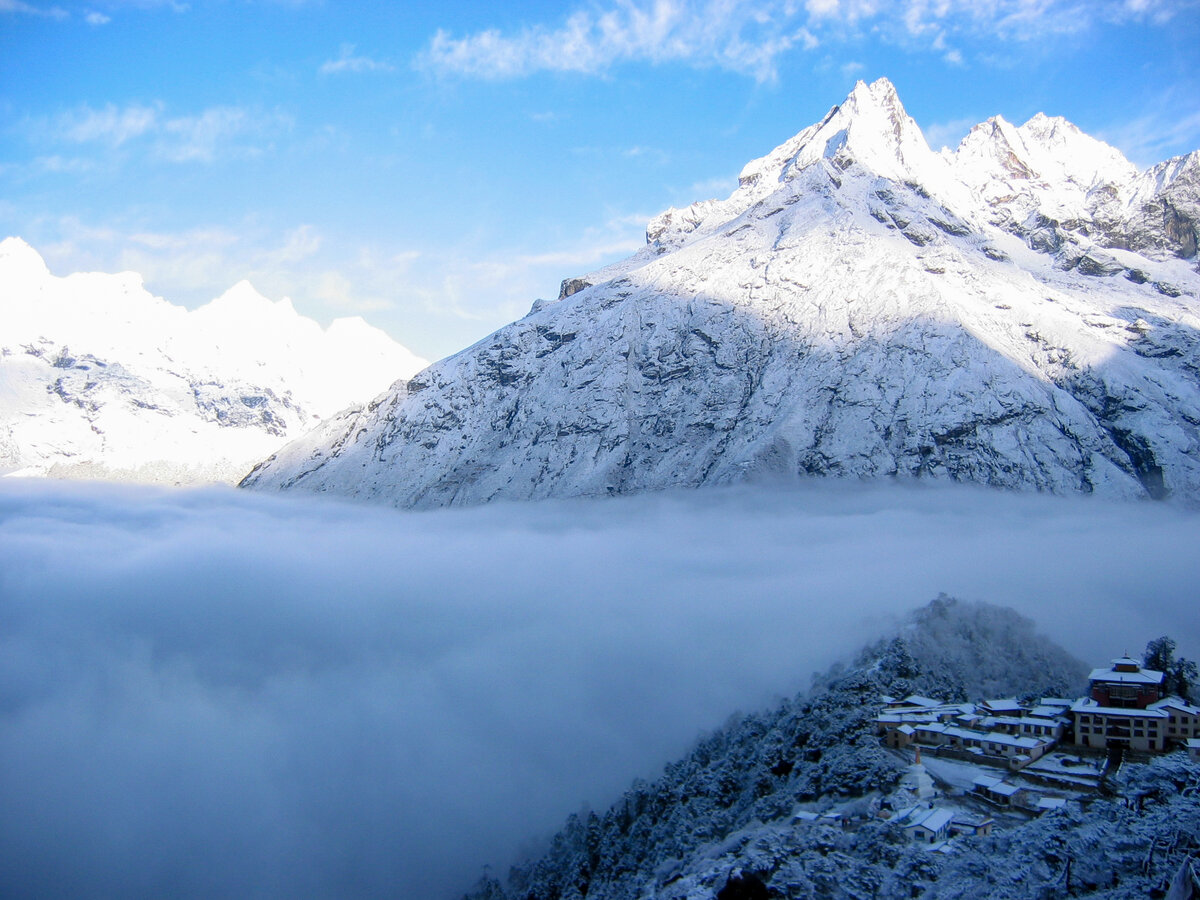 Когда-то покорение Эвереста было делом одиночек или немногочисленных групп героических профессиональных альпинистов. С 1953 года, когда Эдмунд Хиллари и шерпа Тенцинг Норгрэй стали первыми, кто достиг вершины мира, покорили уже свыше 3 тысяч человек, еще более 300 погибли, так и не достигнув заветной цели, гора Эверест не перестает привлекать альпинистов. А уж просто трекеров, которые хотят увидеть великую гору своими глазами, просто не счесть. У меня получилось увидеть Эверест 4 раза - три суровых трека к базовому лагерю с непальской стороны, и один, почти гламурный, со стороны Тибета. Мой первый поход к базовому лагерю я совершила с моим братом в далеком 2000м году. Мы шли сами, без гида, туристов было мало, поскольку это был самых разгар столкновений с маоистами. Фотографий было сделано немало, но все они на пленке, и как-то руки не доходили все перенести на цифровой носитель. Не так уж много сохранилось из того похода. Второй поход я совершила уже с моей командой через некоторое в